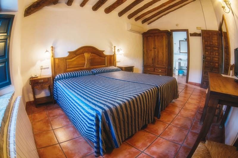 Las habitaciones de Hotel El Horcajo disponen de aire acondicionado, baldosas de barro y vigas de madera. Están equipadas con TV vía satélite, conexión Wi-Fi gratuita y baño privado con secador de pelo.